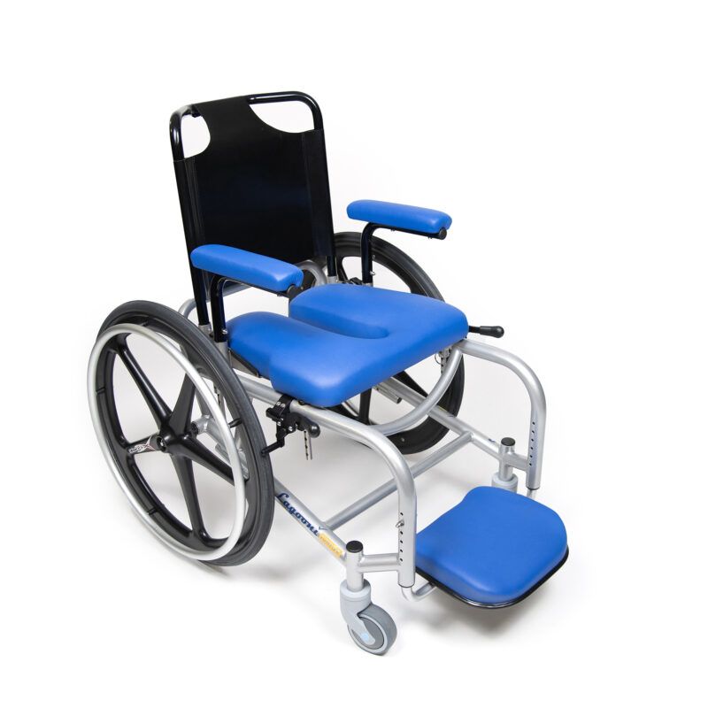 The Lagooni Junior is a manoeuvrable shower wheelchair. This compact model has a small turning circle with the fixed one or two-piece footrest. The Lagooni Junior is designed in such a way that the seat is interchangeable with larger Lagooni seats. This way, the shower commode chair grows with the child. The frame is made of aluminium in combination with stainless steel. By using these materials, the shower commode chair is aside from being lightweight also waterproof. Disassemble the wheelchair quickly, without the use of any tool, and transport it with ease. This way, you can enjoy maximum (mobility) freedom with minimal effort!